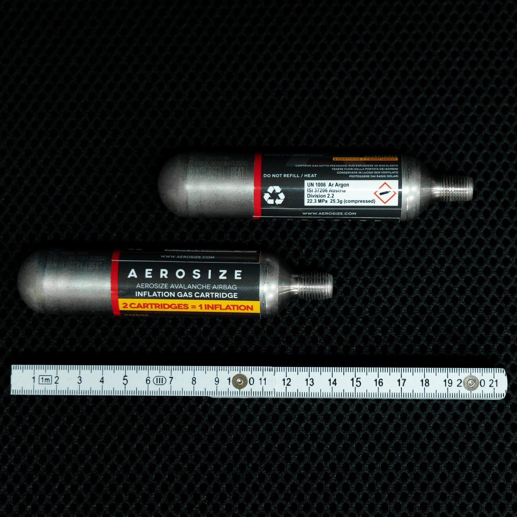 Les cartouches AEROSIZE doivent être protégées contre les dommages. Les cartouches endommagées doivent être remplacées par des neuves. Tenir les cartouches à l'écart des sources de chaleur (lumière directe du soleil, radiateurs, cuisinières, etc.). Voler avec ce type de cartouches est approuvé par l'IATA (International Air Transport Association, une association commerciale mondiale des compagnies aériennes).