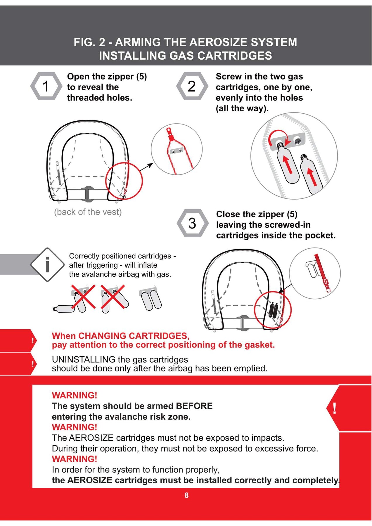 Le système est conçu et certifié pour les cartouches de gaz AEROSIZE uniquement.