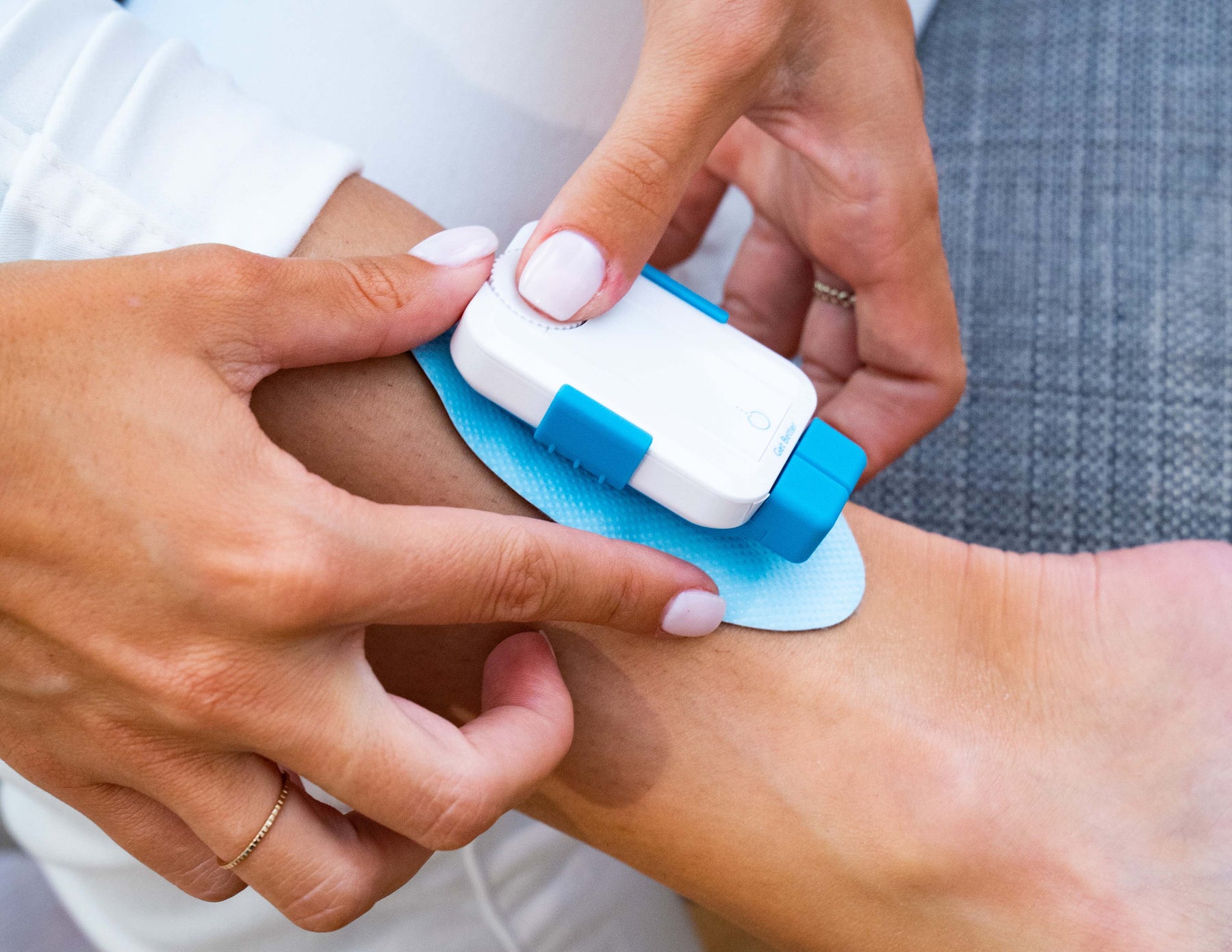 Using the Surf electrode, apply your Bluetens to the sore area like a small electro-therapy bandage. It allows you to treat a small area of skin (wrist, ankle, etc.), which is sometimes difficult to treat with conventional electrodes.