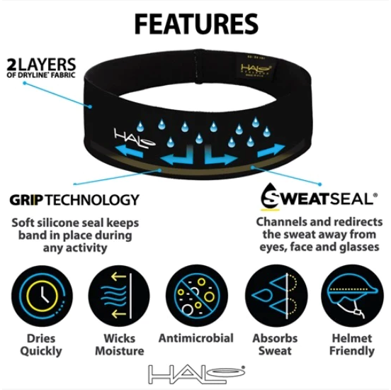 The Halo II headband is made to fit any head comfortably to redirect sweat and moisture protecting your eyes and face.