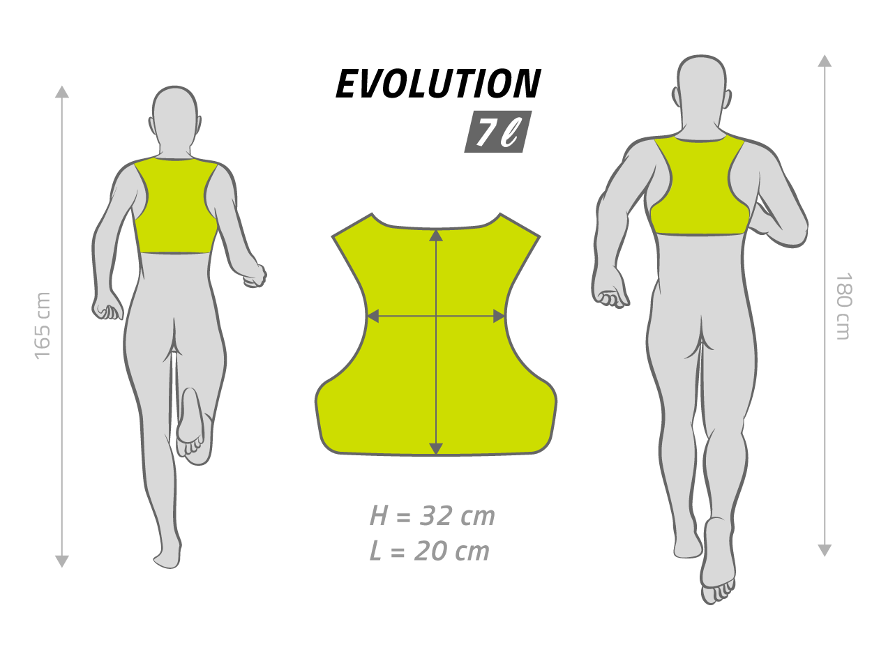The high back placement allows the EVOLUTION to provide immediate and effortless access to your hydration, nutrition, poles and settings.