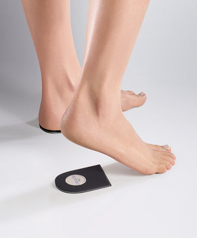 To be effective, heel pads need to be made of a shock-absorbing material that limits the trauma associated with the foot's impact with the ground. Some gels have this ability (but not all), whereas Physio'Choc™ is very good at this. What's more, because they are extremely flexible, gel heel pads encourage the foot to tilt inwards in a pronated attitude. When worn for long periods, they can lead to pain in areas other than the foot, such as the knee.